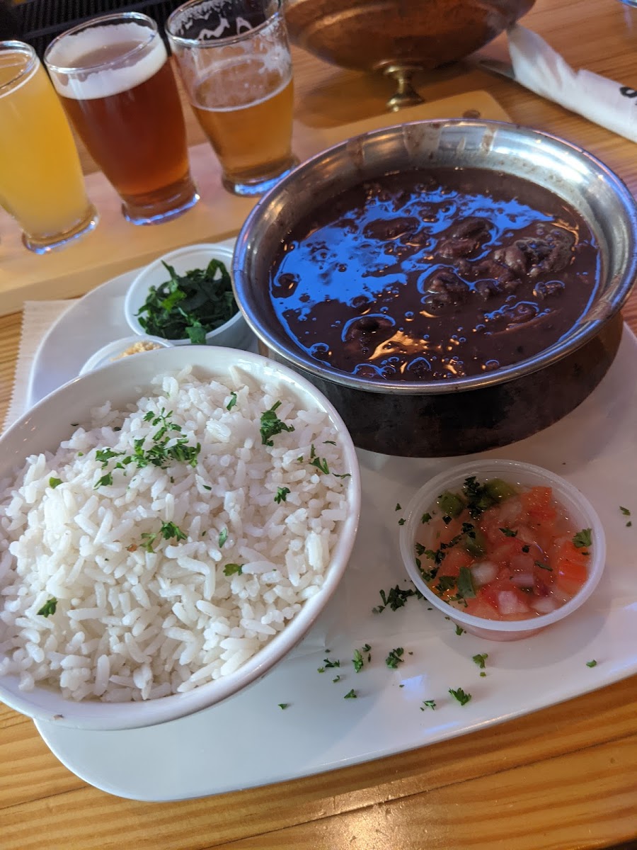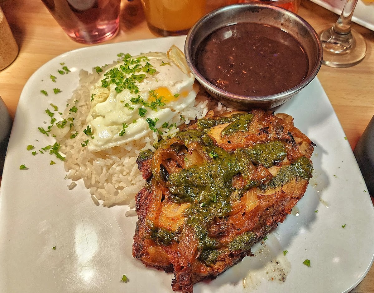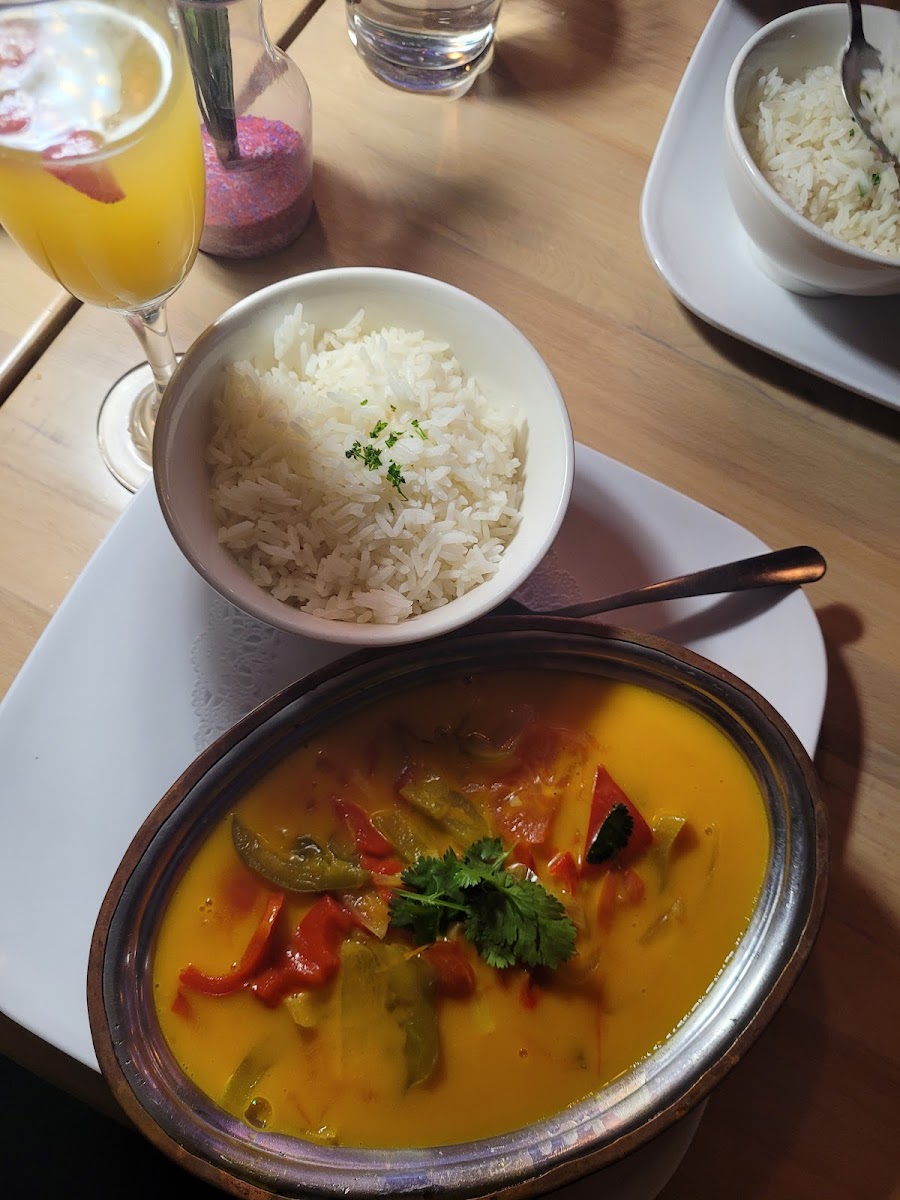 A gem of a Brazilian restaurant with a Latino touch! The atmosphere is relaxed yet lively, and the drinks really stand out—creative, well-priced, and excellent quality. We only tried a couple of dishes along with some appetizers, but everything we tasted made a great impression. The cheese bread is authentic and warm and the fried snacks were crisp and flavorful. I decided to take a chance on the moqueca, and it exceeded expectations: creamy coconut broth, rich flavors, and perfectly balanced seasoning. On top of that, the service was genuinely kind and attentive, making the whole experience feel welcoming and unhurried. The playlist was also fun and chill, adding to the relaxed vibe. It is a perfect way to spend a Sunday afternoon that stretches into the evening.